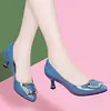 Moda feminina céu azul dedo do pé redondo 7cm primavera stiletto saltos para senhora do escritório preto sapatos de salto alto zapatos dama