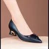 Sapatos femininos clássico de alta qualidade azul marinho couro do plutônio escritório sapatos salto alto preto confortável bombas festa