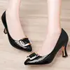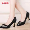 Moda feminina alta qualilty couro do plutônio apontou toe sapatos de salto alto senhora casual escritório 6.5cm sapatos de salto alto