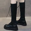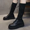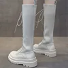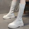 Senhoras sapatos de dedo do pé redondo mulher confortável sapatilhas femininas mais tamanho botas femininas moda rendas até botas femininas botas de plataforma branca
