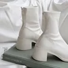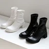 Mulheres sexy sapatos de salto alto com zíper botas femininas moda botas de tornozelo branco mulher confortável senhoras sapatos de dedo do pé redondo botas femininas
