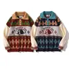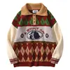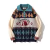Camisola retro japonês 2021 outono inverno cor bloqueando xadrez amantes soltos estilo preguiçoso gola polo camisola maré grunge