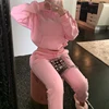 Agasalho feminino com capuz moletom e calças compridas moda feminina dois conjuntos de peças das mulheres roupas sp812
