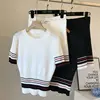 Conjunto de roupas de lazer, roupas esportivas de verão para mulheres com duas peças, camisetas de tamanho grande, com cintura alta, preto/branco, roupas de cor