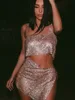 Sruby moda saia terno de comércio exterior boate voltar dividir metal estilingue renda diamante saia 2021 novo
