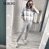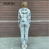 Hlbcbg suéter com capuz xadrez, de malha, feminino, quente, grosso, estilo harém, 3 peças