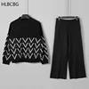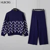 Hlbcbg estilo euro malha drapeja larga perna calça terno dois conjuntos de peças winterthick quente feminino camisola de treino longas calças retas