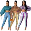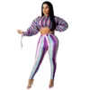 Outono feminino conjunto de duas peças camisa listrada e calças compridas cintura alta roupas esportivas para roupa feminina