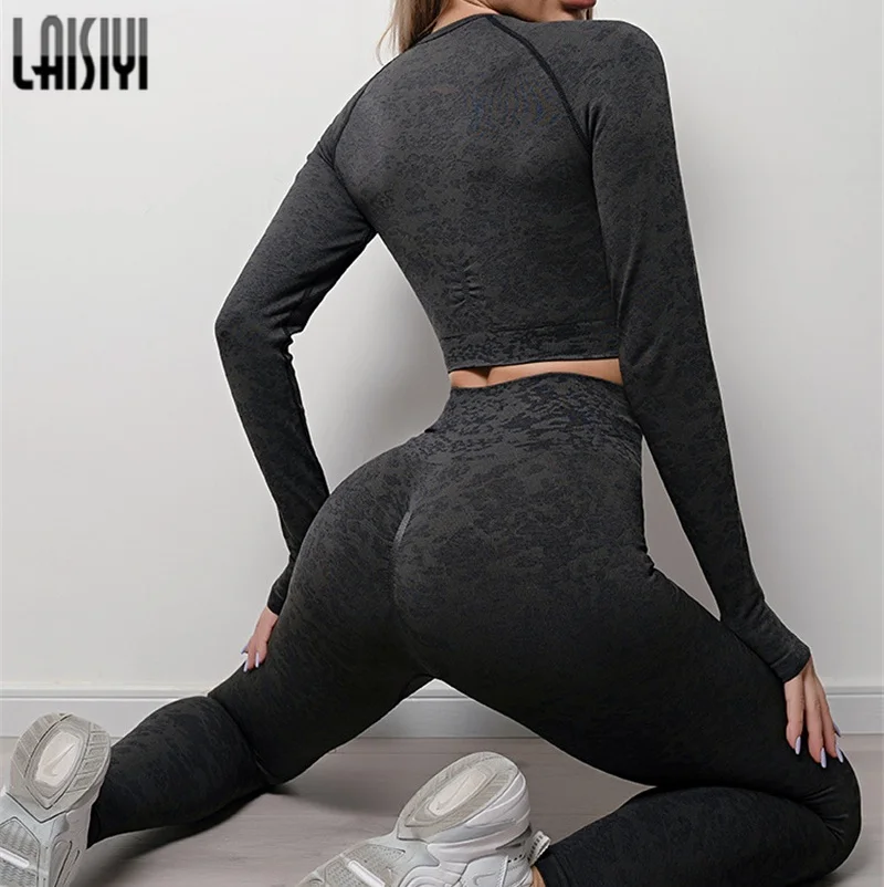 Conjunto de duas peças roupa do esporte para a mulher treino conjunto de treino feminino colheita superior push up leggings feminino terno para a aptidão esportiva