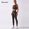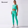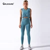 Chrleisure sem costura esportes terno feminino sem mangas cintura alta respirável leggings de fitness com cordão terno treino