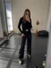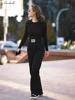 Macheda outono esportes ao ar livre duas peças de cintura alta calças retas com manga longa topo lazer duas peças de roupa feminina