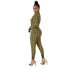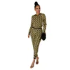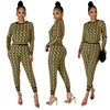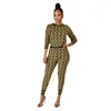 Outono senhoras 2020 nova moda impresso terno em torno do pescoço casual esportes 2 peças conjunto de moda curto pulôver topo e leggings terno