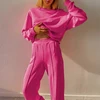Feminino casual sólido agasalho solto manga comprida pulôver moletom e elástico perna larga calça duas peças conjunto moda feminina ternos
