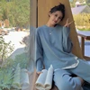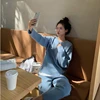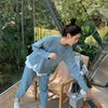 Feminino outono conjunto de duas peças coreano manga comprida malha fenda topos calças retas ternos conjuntos roupas femininas