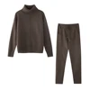 Terno de malha de lã feminino gola alta camisola + calças estilo solto conjunto de duas peças fato de treino de malha feminino