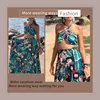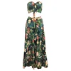 Mulheres sexy boho duas peças conjunto de topo de colheita saia longa floral impresso bandagem sem alças babados cintura alta saias férias conjunto