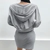 Cinza zip up hoodie top colheita e botão cinta vestido de algodão duas peças conjunto agasalho feminino outono 2020 sweatsuit outfits streetwear