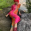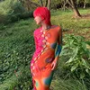 Dfllifes buraco oco vestido feminino impressão de manga longa inverno sexy clubwear colorido todos os dias bodycon vestidos roupas