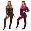 Casual marca senhoras terno veludo geométrica impressão com capuz pulôver manga comprida blusa cintura elástica calças finas streetwear conjuntos