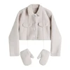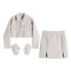 Outono e inverno novo estilo damasco de pelúcia curto casaco fenda saco hip saia luvas terno de manga longa superior meia saia de três peças terno