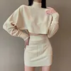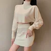 Moda saia curta terno feminino primavera roupas gola alta manga comprida vestido 2 peça conjunto vestido vestidos sexy streetwear
