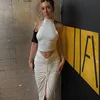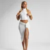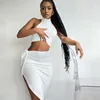 Sem costas cabresto superior e midi saia ruched 2 peça conjunto branco sem mangas sexy conjunto de correspondência moda clube roupas festa à noite
