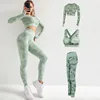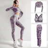 Terno do esporte das mulheres sem costura camuflagem esportes wear ginásio camo roupas de fitness bodycon leggings sutiã ginásio treino esporte terno 3 pçs