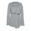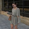 Moda feminina shorts terno 2021 outono novo umbigo cor sólida com decote em v manga longa rua shorts em linha reta shorts casuais conjuntos