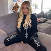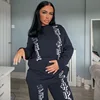 Casual carta imprimir agasalho duas peças roupas femininas manga longa solta moletom cintura alta calça moda streetwear outono 2021