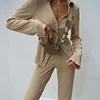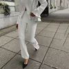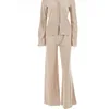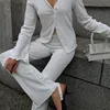 V pescoço sólido solto conjunto de calças manga longa casual botão camisa elástica cintura larga perna pant 2021 outono streetwear feminino pant conjunto