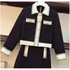 Casual preto feminino saia define 2021 outono botões turn down colarinho camisa magro mini saias todos os jogos manga longa saia ternos