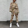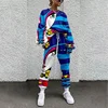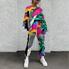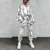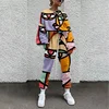 Weiyao moda camisola tecido feminino manga longa elástico cintura agasalho pullovers o pescoço abstrato impressão cordão suor terno