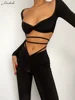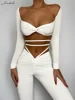 Macheda primavera 2022 cintura reveladora strappy sexy jaqueta é emparelhado com cintura baixa umbigo revelando estiramento cintura calças finas terno