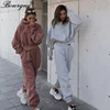 Agasalho feminino velo 2 peças conjunto hoodies e moletom primavera inverno esporte casual cor sólida moda streetwear feminino terno