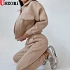 Feminino casual conjuntos de duas peças outono inverno moda feminina quente ternos turn down colarinho jaqueta e cordão calças de treino