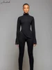 Macheda 2022 primavera feminino magro macio de duas peças vestido de mulher com gola alta elegante mangas alargadas e calças de cintura alta