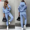 2022 nova moda feminina cor sólida agasalho inverno nova moda manga longa esportes e lazer conjunto de camisola de duas peças
