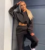 2022 feminino outono e inverno cor sólida hoodies conjunto de treino nova moda manga longa esportes lazer terno duas peças conjunto