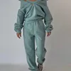 Mulheres velo de duas peças conjunto outono inverno feminino esportes terno quente casual oversized polo zíper camisolas e calças de treino