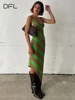 Dfllifes assimétrico vestido feminino sem costas listrado impressão sem mangas mulher roupas magro vestidos verdes sexy primavera verão 2022