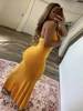 Dfllifes cabresto vestido feminino sólido colorido mulher roupas sem costas sexy vestidos casuais para mulher magro robe primavera verão 2022