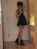 Dfllifes arco bandag vestido feminino sem costas sem mangas sólido magro sexy vestidos elegantes para a mulher primavera verão casual robe 2022