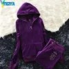 Yiciya velour ternos de compras lazer esportes feminino bordado veludo terno pernas soltas com capuz agasalho feminino topo de colheita calças