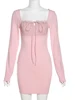 Dfllifes fungo vestido feminino manga longa mulher roupas bandagem magro vestidos elegantes para mulher casual robe sexy primavera 2022 novo