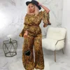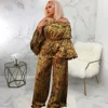 Moda comute conjuntos de calças femininas sexy alargamento manga exposta umbigo t shirts solto casual calças retas 2pc conjunto senhora do escritório terno
