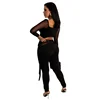 Znaiml 2022 mulheres 2 peça conjuntos de roupas das mulheres cintura alta conjunto calça sheer malha manga longa clube roupas festa terno