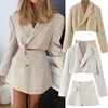 2022new 2021 outono feminino 2 pçs saia superior terno curto jaqueta de cor sólida saia curta ternos lapela único breasted manga longa