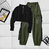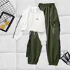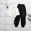 2022new mulheres carga streetwear harajuku pant chain feminino dois conjuntos de peças calças fivela fita bolso jogger elástico cintura alta