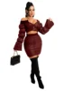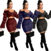 Znaiml 2022 duas peças roupas ternos feminino quente algodão acolchoado jaquetas topos saia definir fora do ombro zíper saias grossas define