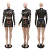 Wishyear 2022 sexy mini saias conjuntos de duas peças das mulheres outifits espumante lantejoulas sheer mesh festa boate vestido conjuntos